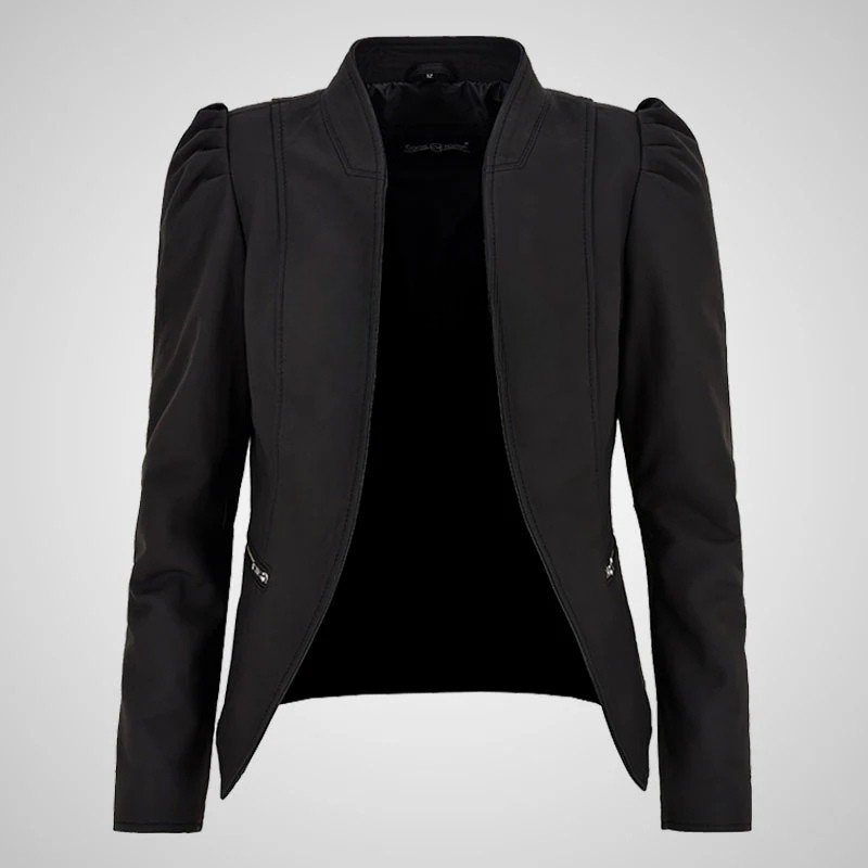 ELENA Ladies Matte Leather Puff Sleeves Leather Jacket