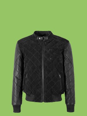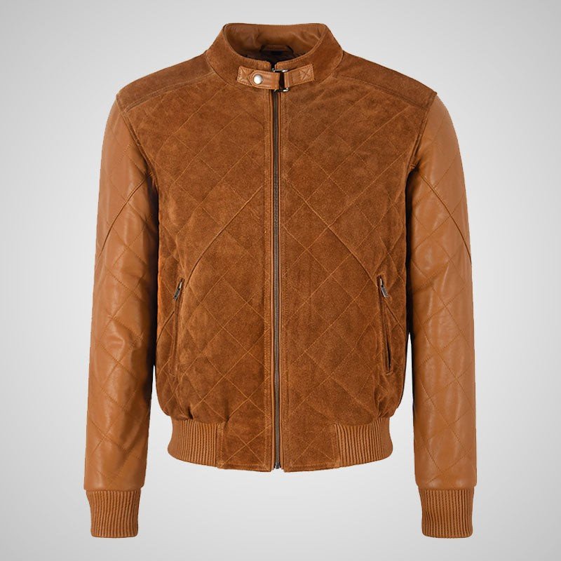 BRYSON Mens Leather and Suede Bomber Jacket Varsity Quilted Jacket