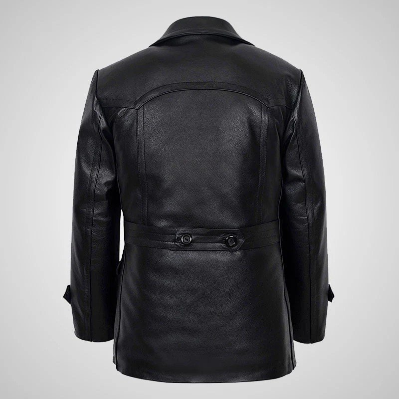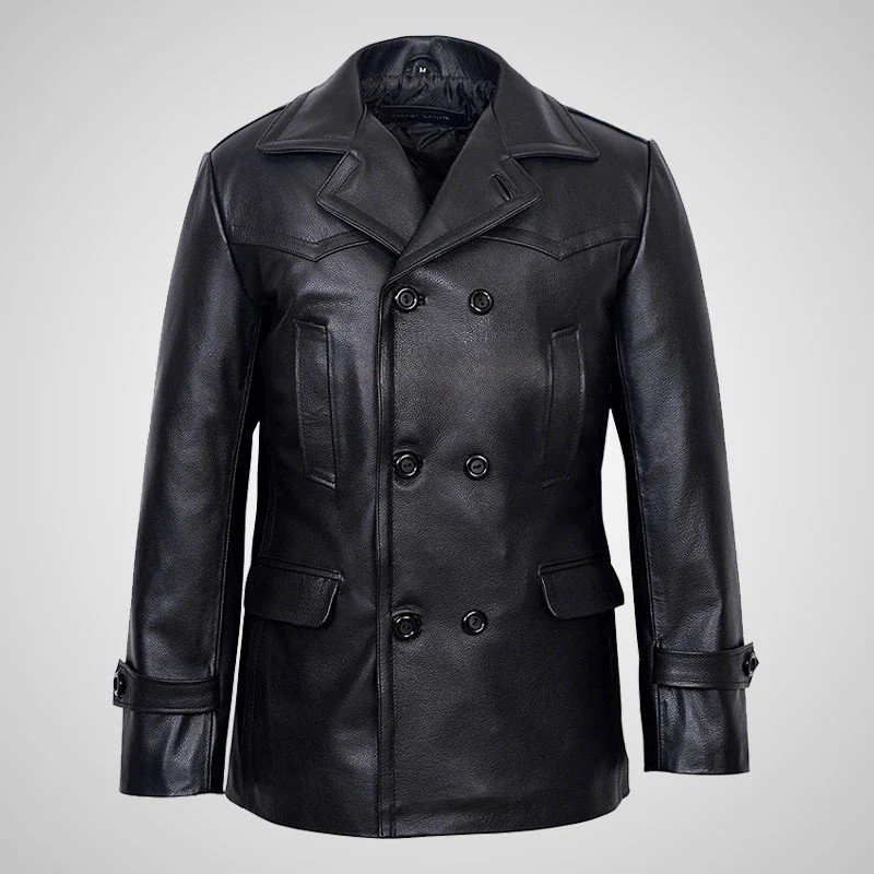 KRIEGSMARINE Mens Leather Pea Coat Classic German Military Leather Jacket