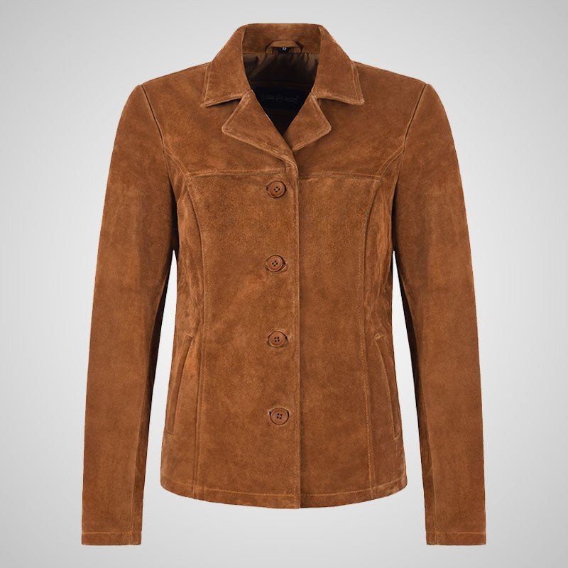 JANE Ladies Suede Blazer Formal Fitted Leather Blazer