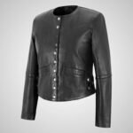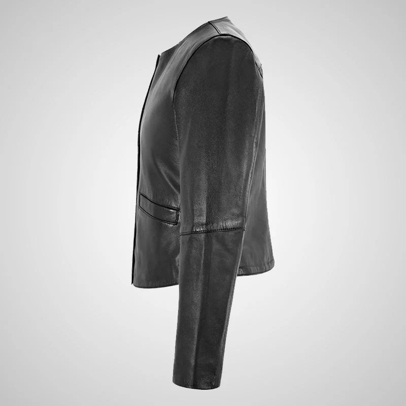 KIMBER Ladies Collarless Leather Jacket Short Fitted Black