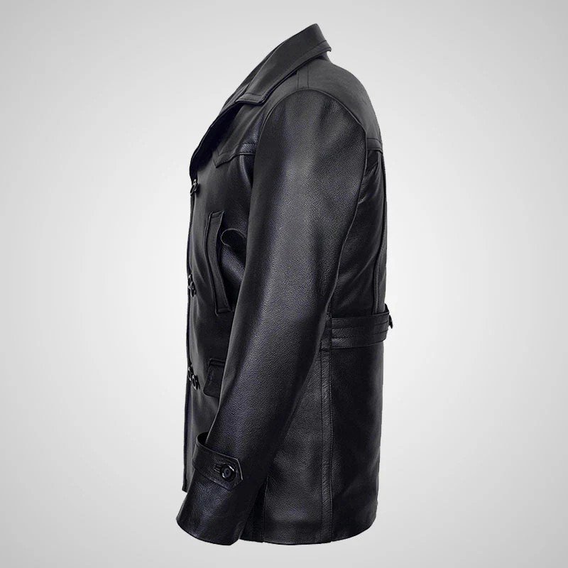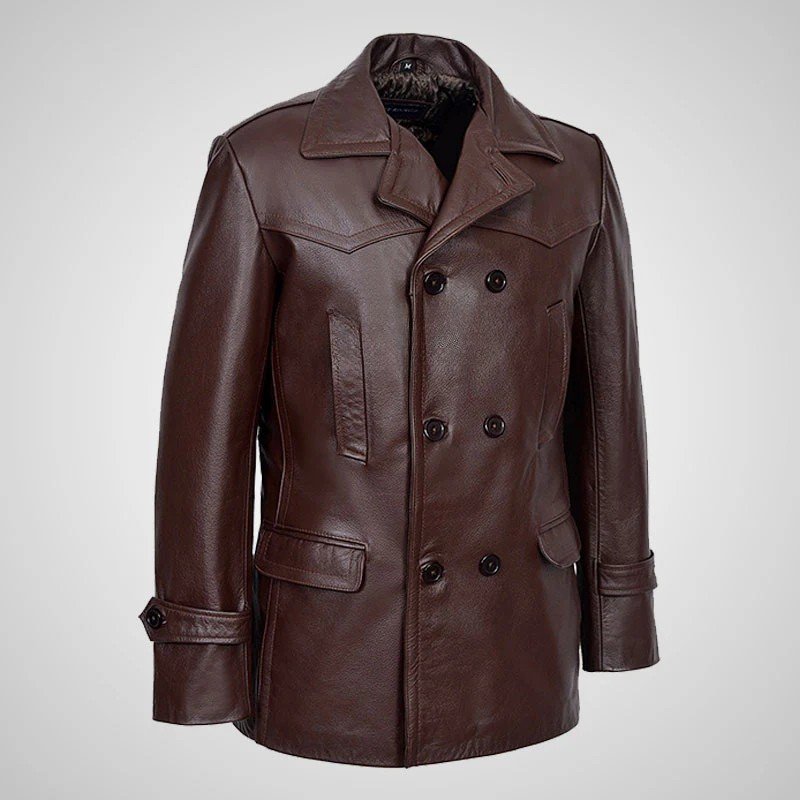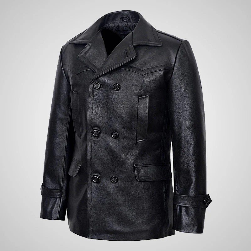 KRIEGSMARINE Mens Leather Pea Coat Classic German Military Leather Jacket
